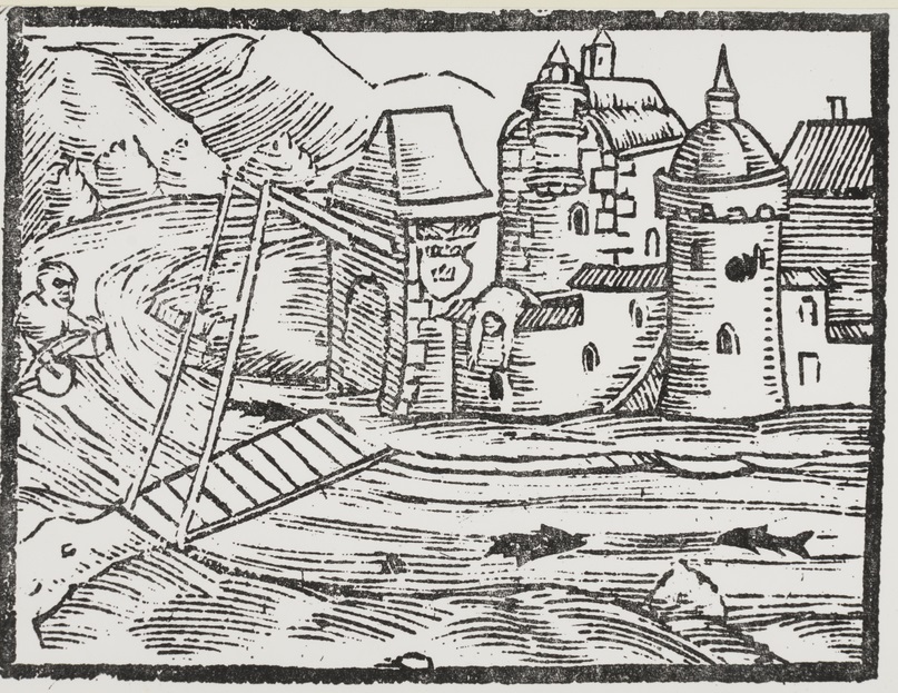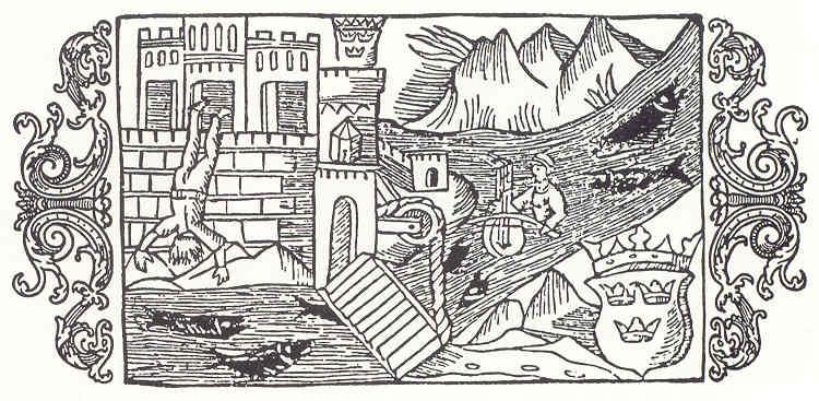 Olavinlinnan kuvia Olaus Magnuksen Pohjoisten kansojen historiasta 1555.